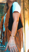 Chaleco realizado en cuero combinado en dos colores : negro y suela .