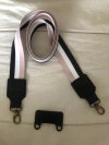 Correa realizada en cinta sublimada con extremos en cuero y con mosqueton metalico y le sumamos esta pieza autoadhesiva plastica . Si tu telefono ya tiene una funda que lo protege y buscas sumarle funcionalidad, el ADAPTADOR UNIVERSAL , es una excelente idea para tener tu telefono cerca y las manos libres . Caracteristicas : Pieza plastica autoadhesiva de 57 mm de ancho x 25 mm de alto . Por detras tiene una cinta autodhesiva de alta resistencia y de un solo uso. Tene en cuenta que la correa la podes usar como tira bandolera en alguna cartera .