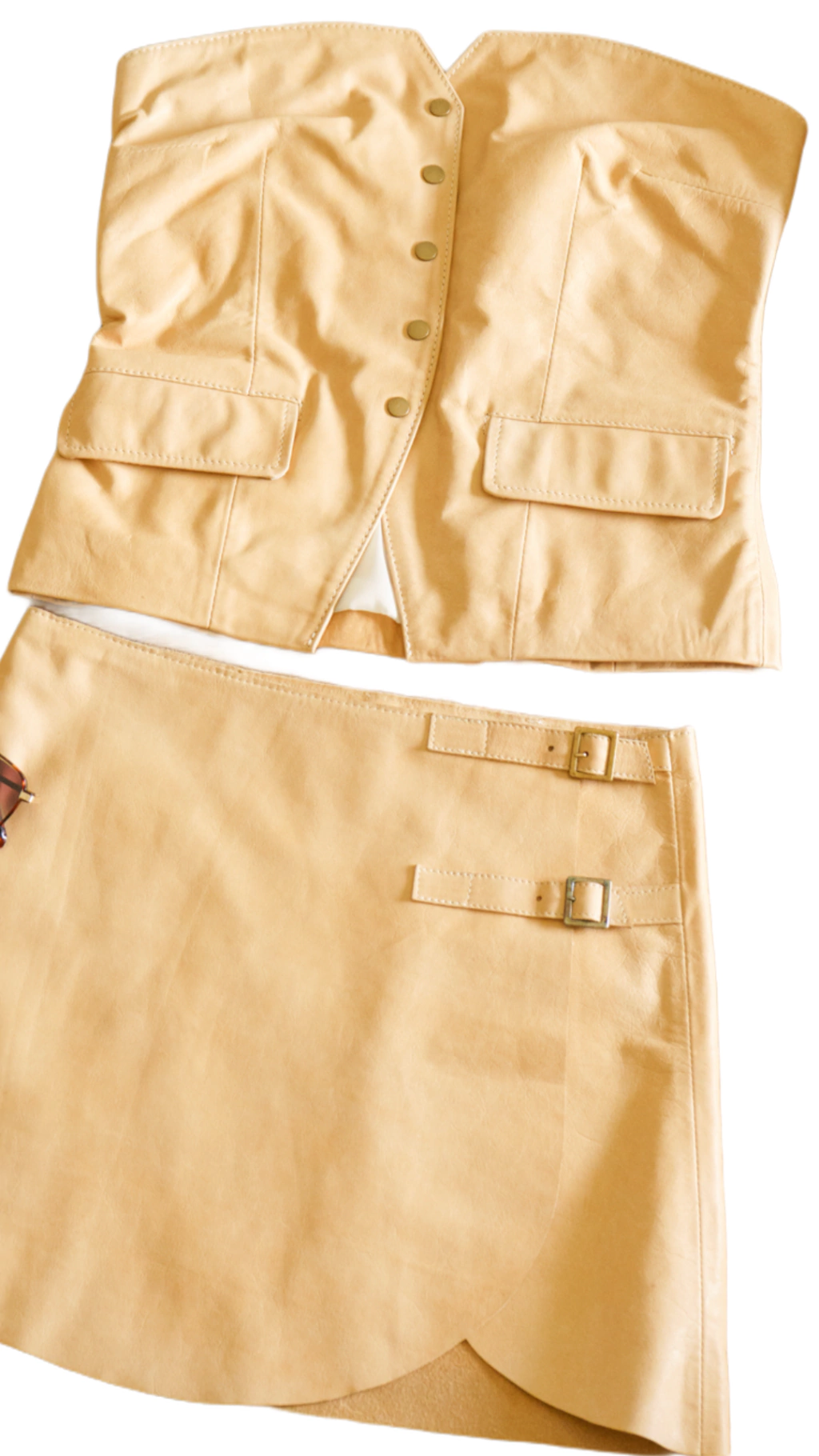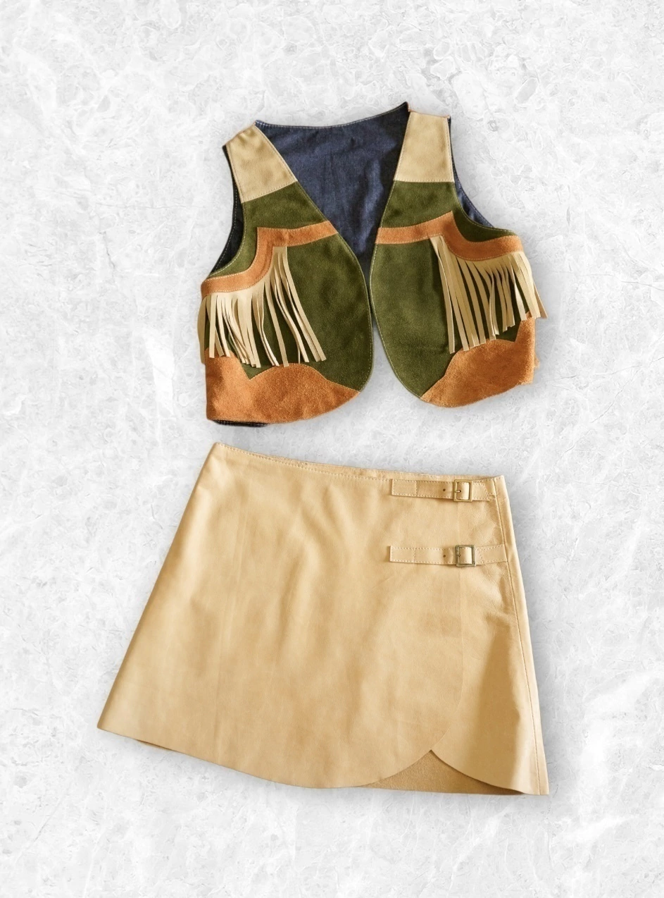 Minifalda realizada en cuero tipo portafolio .