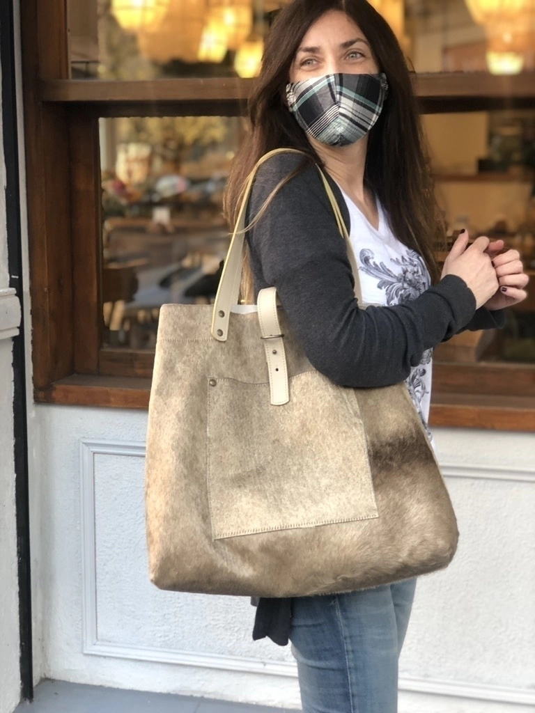 Tote Bag realizada en cuero con pelo y confeccionada a mano.