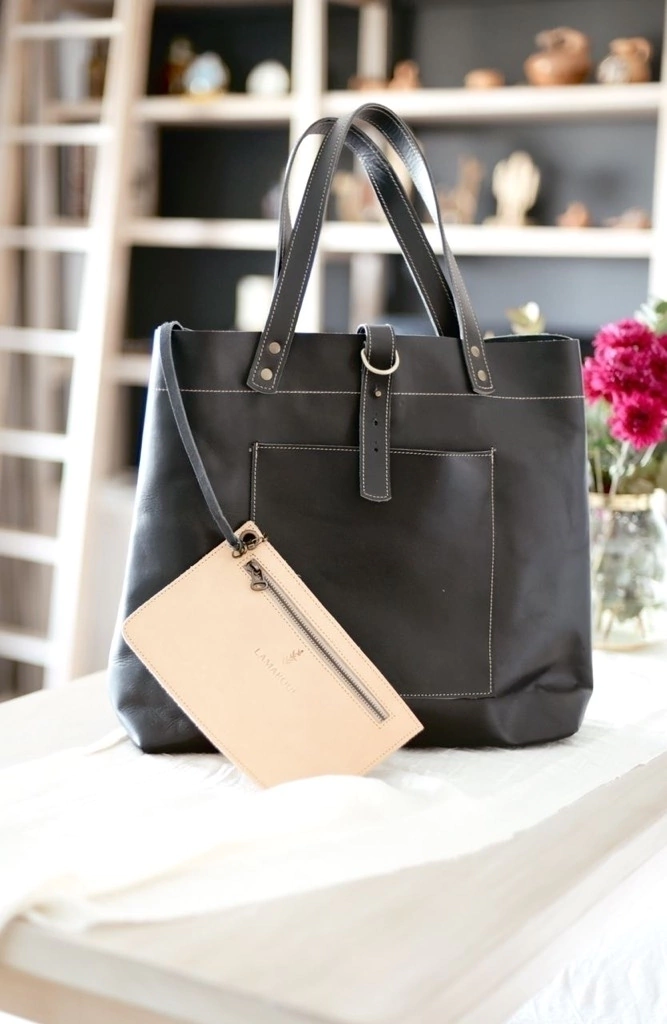 Tote Bag realizada en cuero de curtido vegetal confeccionada a mano.