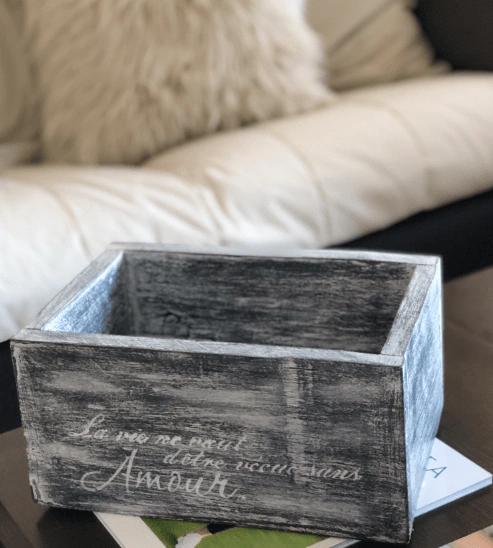 Cajon de madera. Terminacion : decapado. Accesorio : Manija